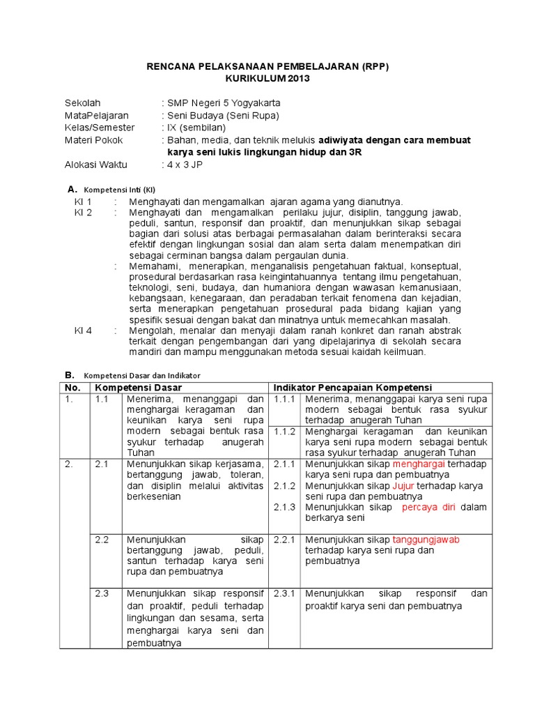 Rpp kelas 9 smp rpp satu lembar kelas 1 smp semester 2 seni budaya (disini).