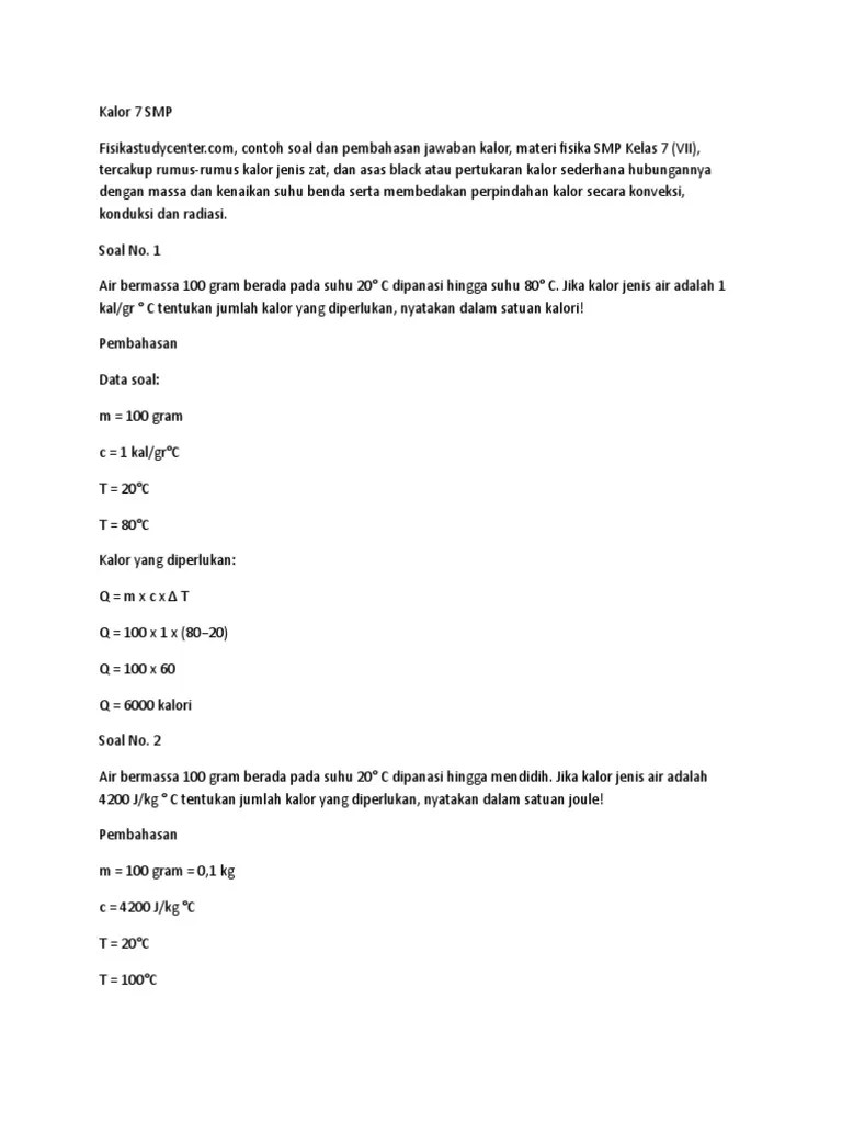 Contoh Soal Kalor Smp Dan Pembahasannya - Contoh Soal Dan Pembahasan Kalor Sedang - Contoh soal suhu dan kalor beserta pembahasannya.